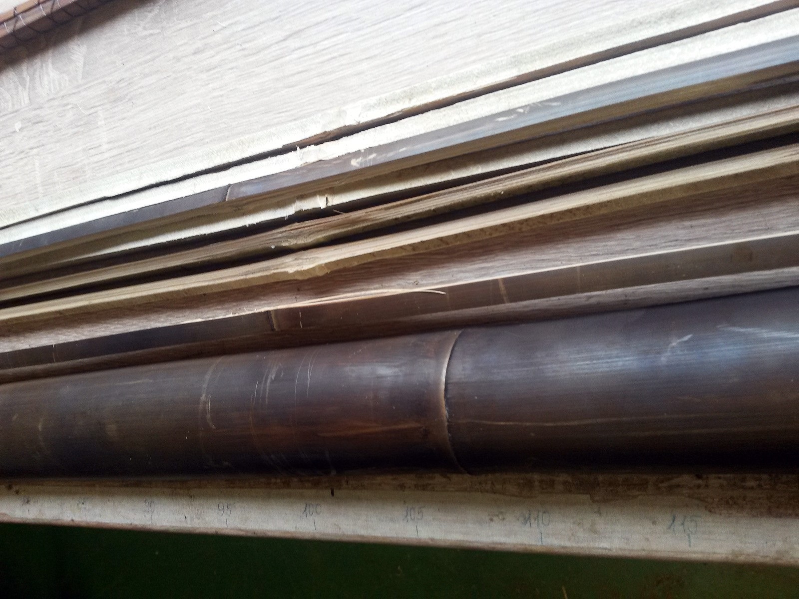Egyengetés: Egy bambuszrúd, mint a pázsitfűfélék szára, ízekből (nódusz) és ízközökből áll. A nóduszok nem is tűnnek